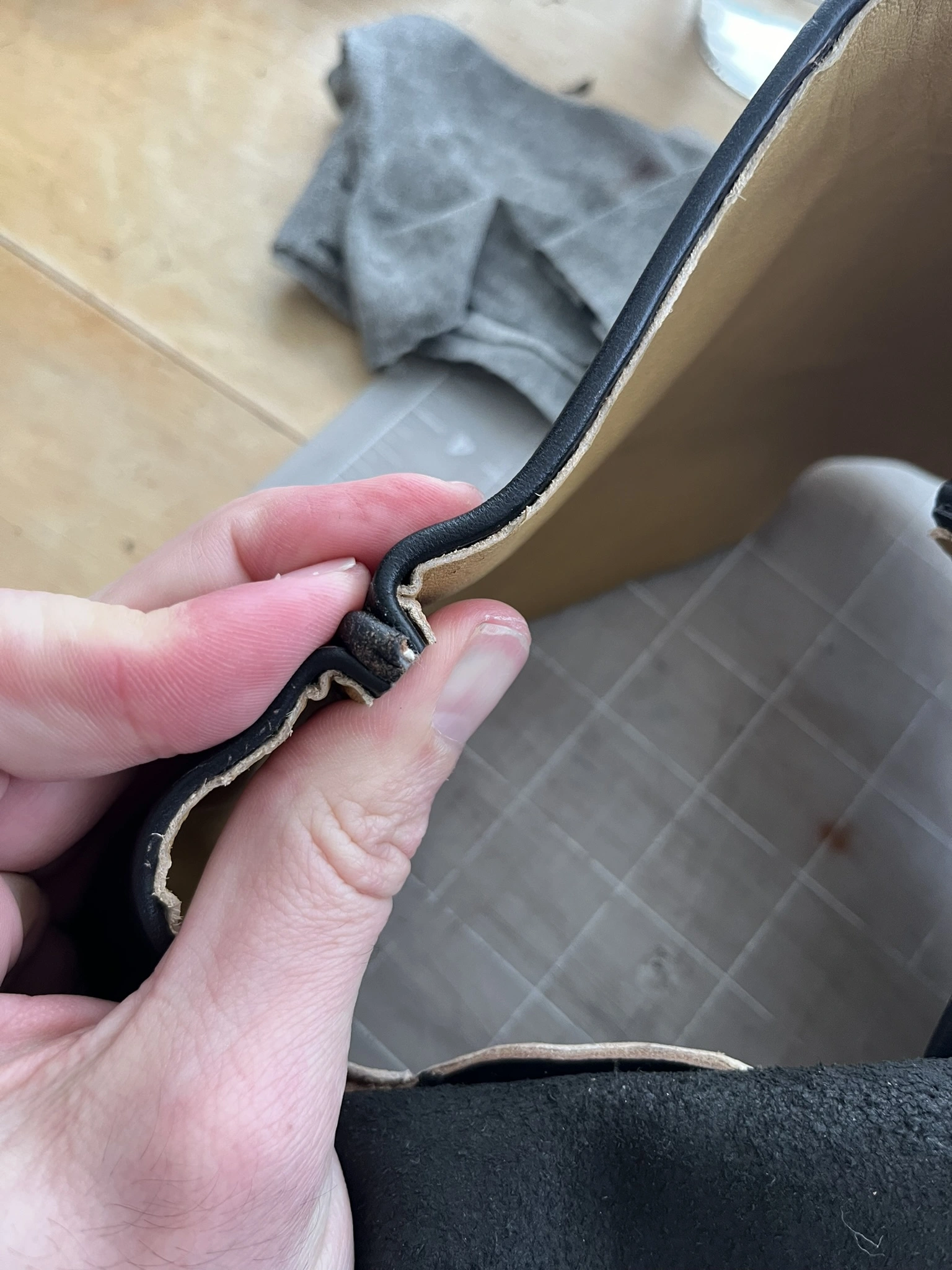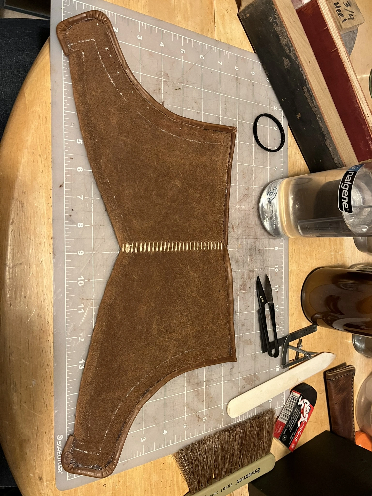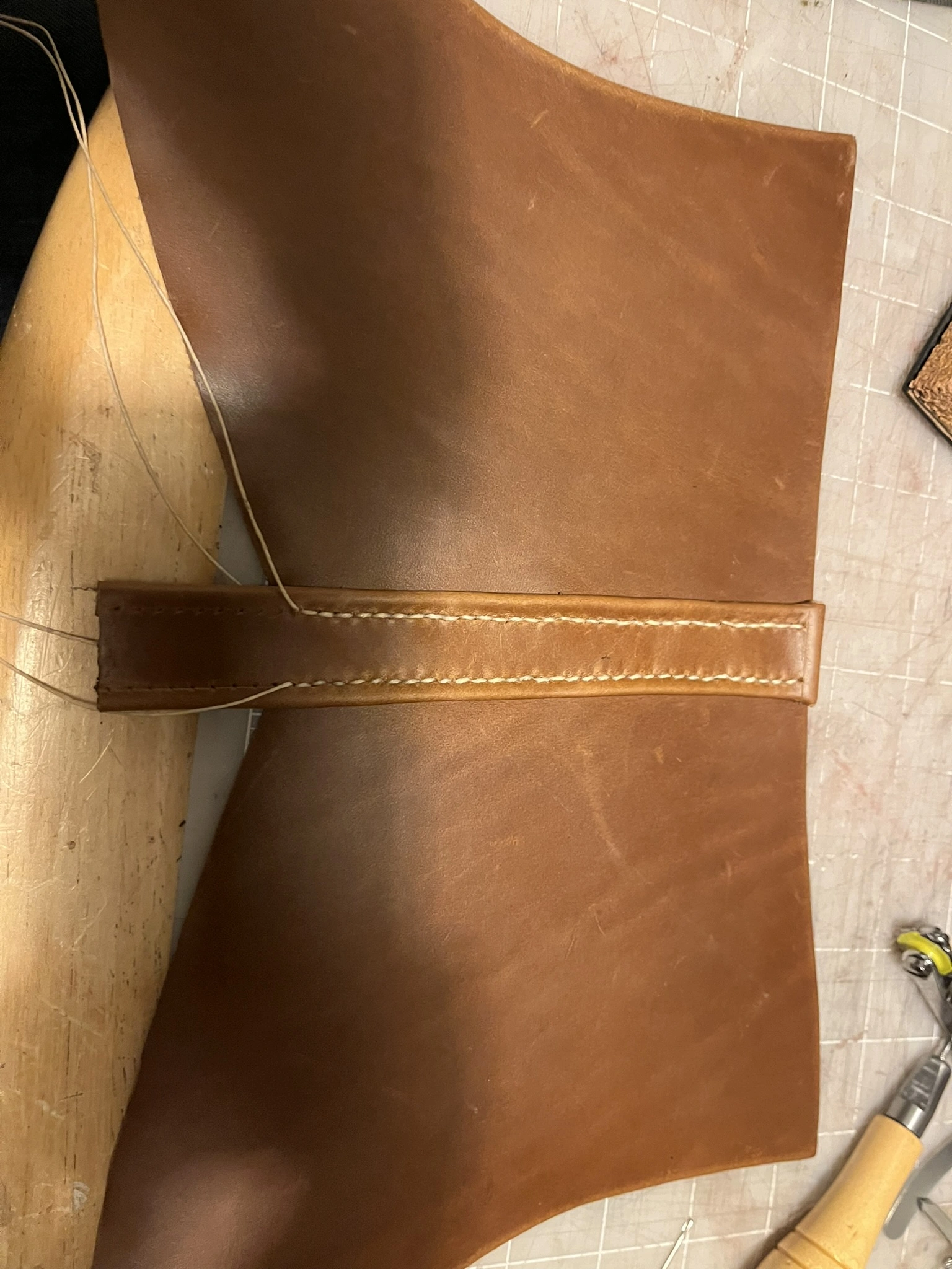For smoother interiors, I should have just pasted the quarters temporarily using a strip of fabric and relied on the cement and stitching of the backstraps for strength.