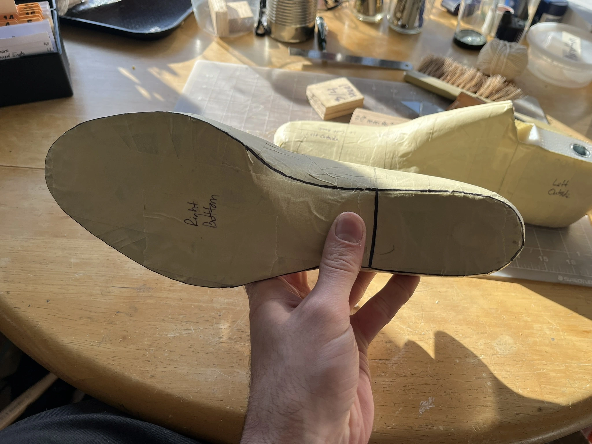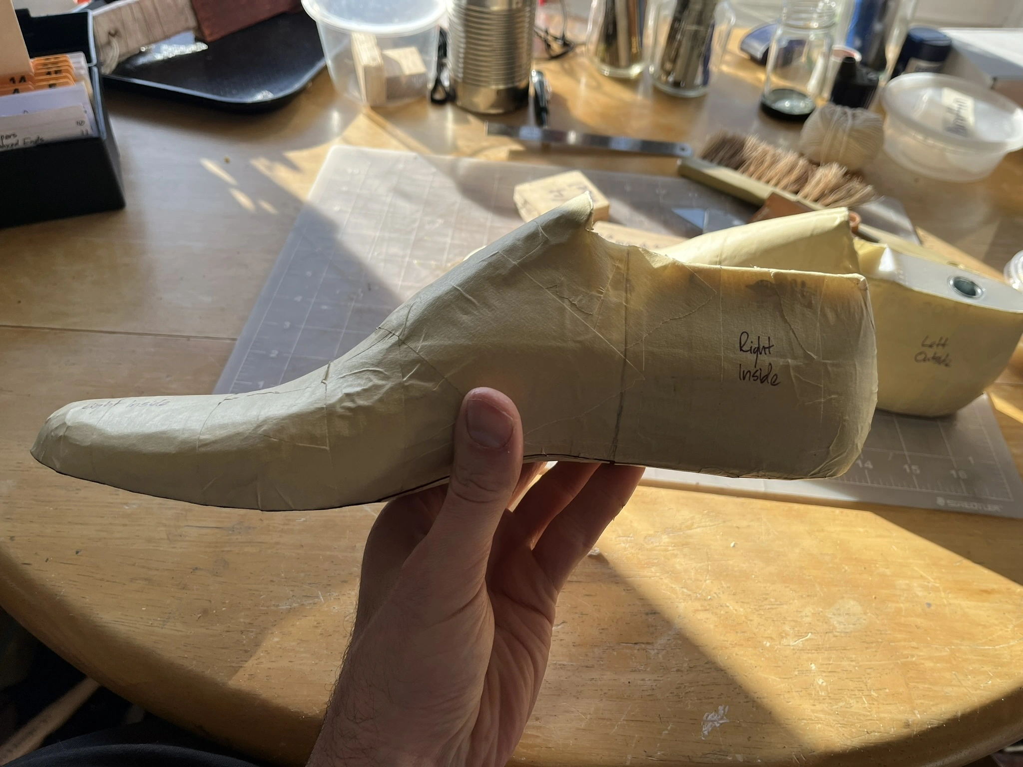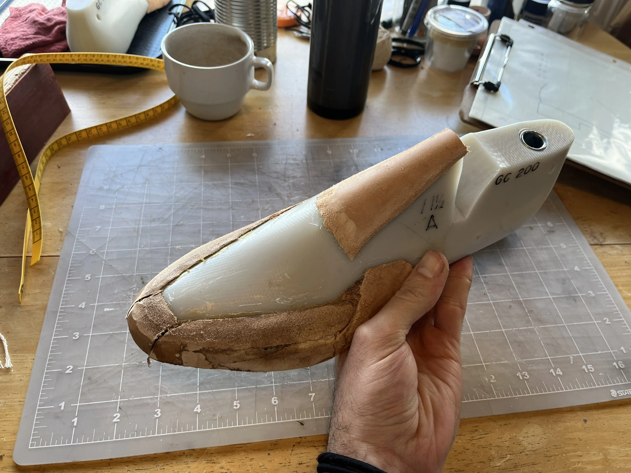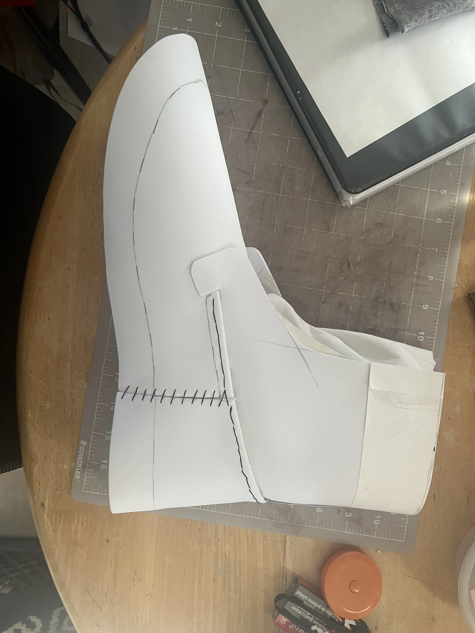 I was nervous about giving myself enough lasting allowance, and decided to make and last one whole upper before clicking the vamp and counter pieces for the second. This might have been a good idea, but I wasn’t as thorough enough taking notes about how I made the first upper to be sure I’d make all the same choices again on the second.