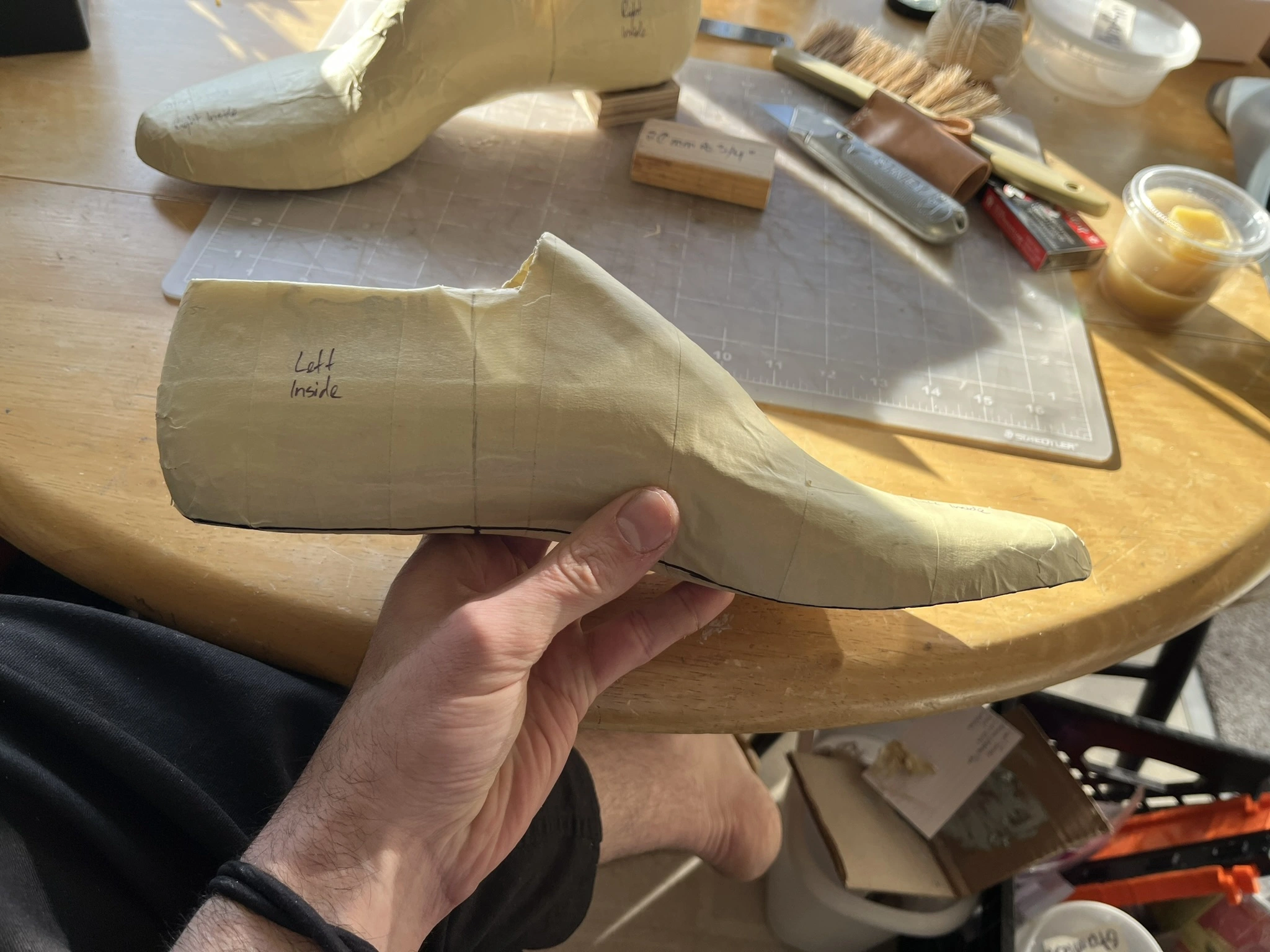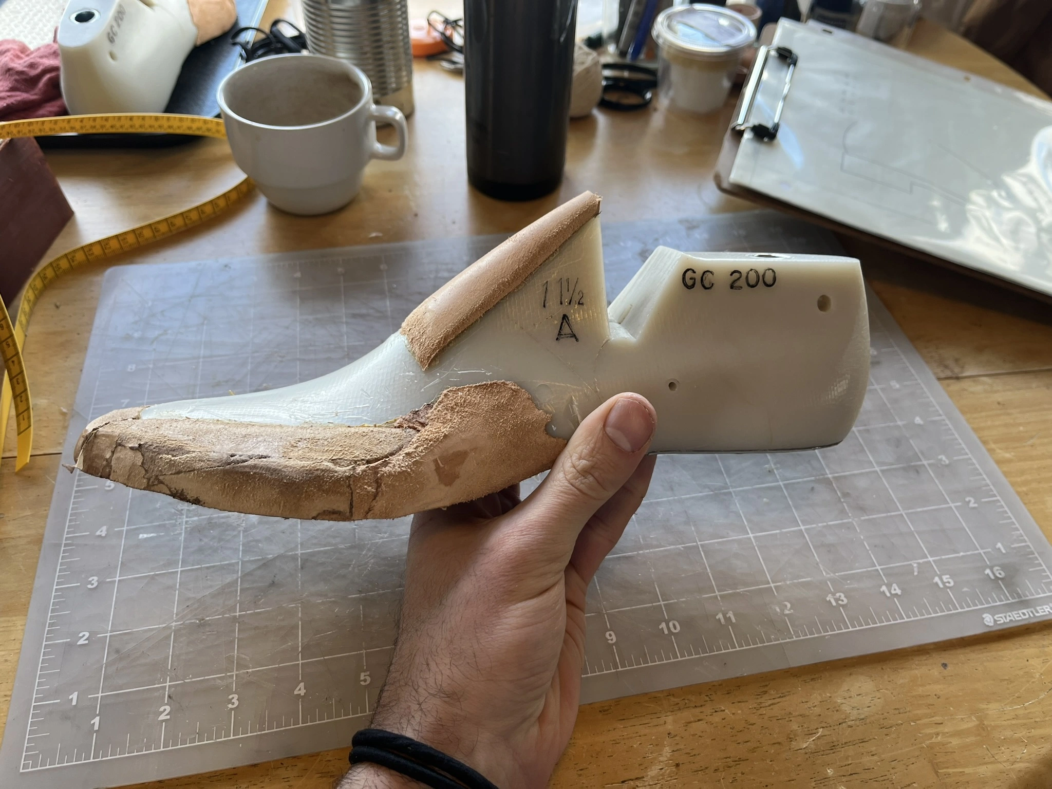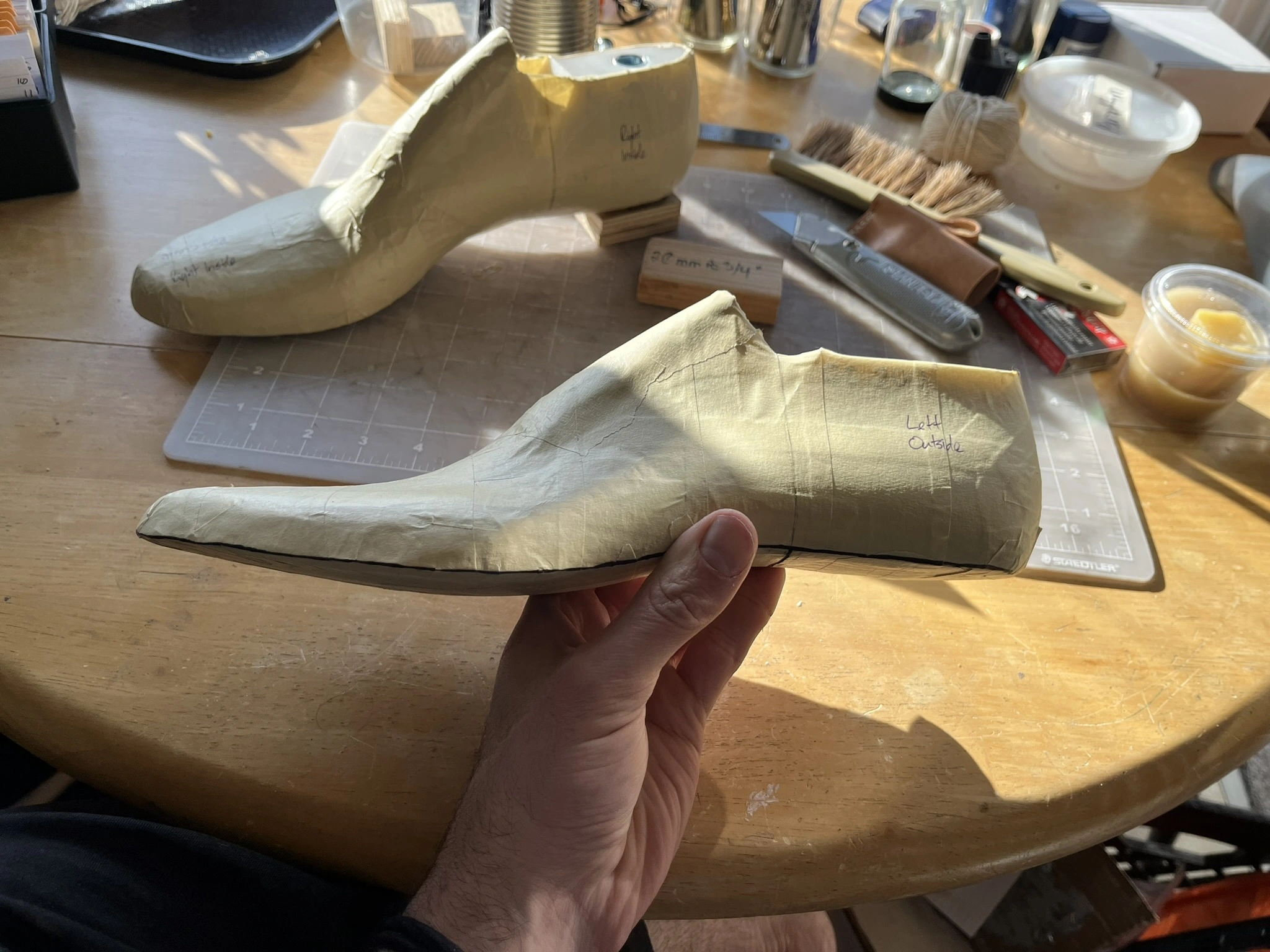 I was nervous about giving myself enough lasting allowance, and decided to make and last one whole upper before clicking the vamp and counter pieces for the second. This might have been a good idea, but I wasn’t as thorough enough taking notes about how I made the first upper to be sure I’d make all the same choices again on the second.