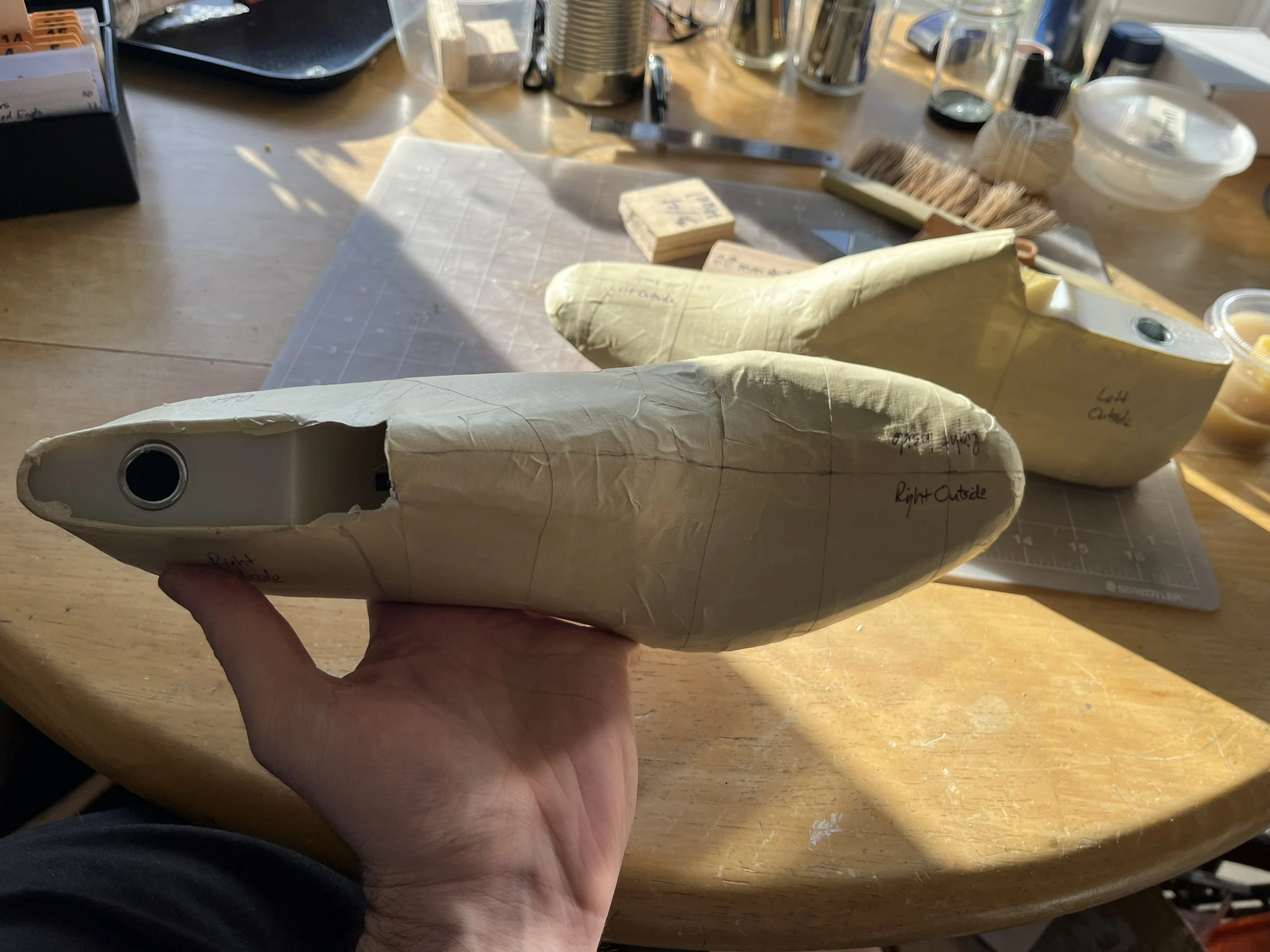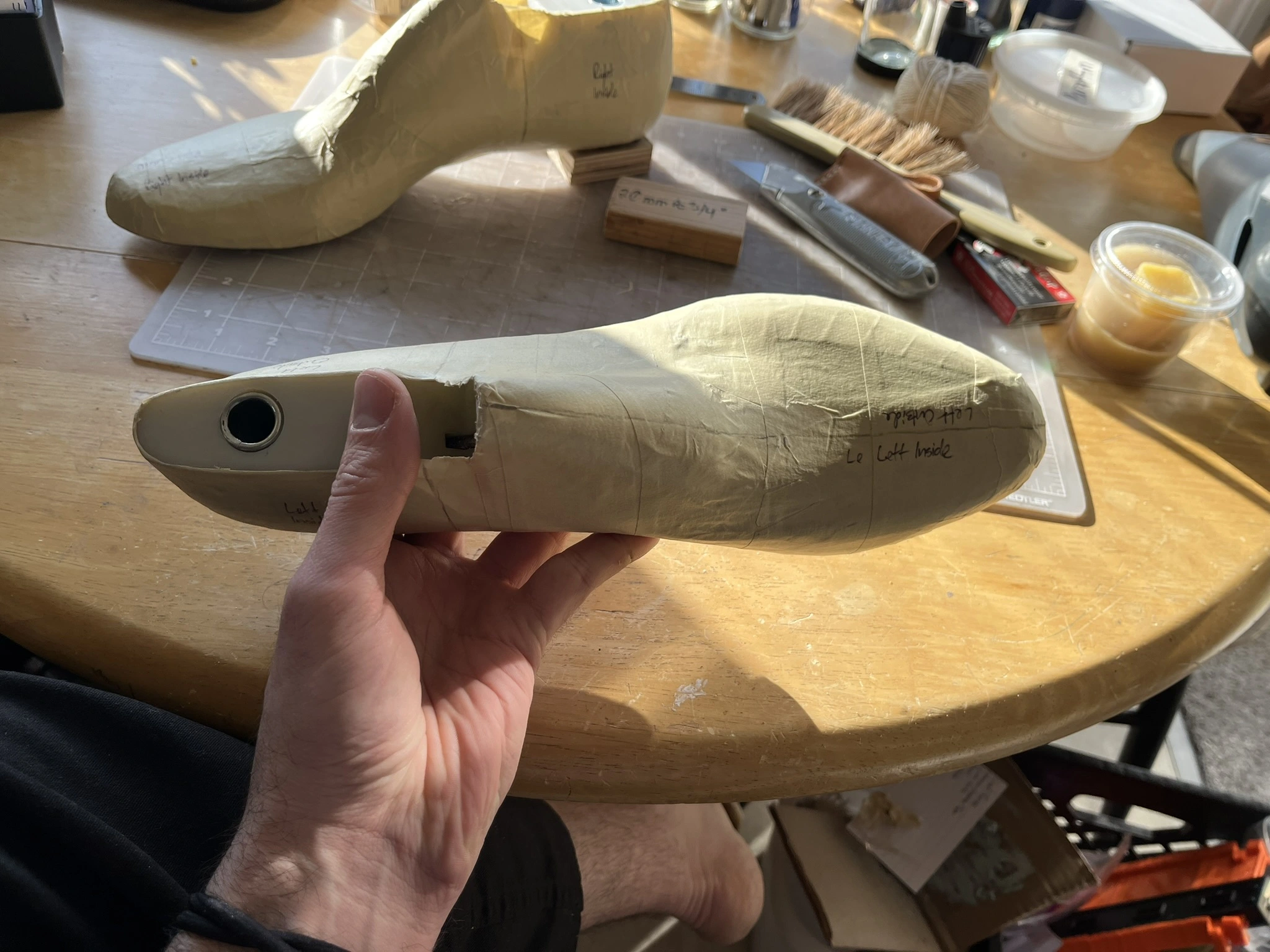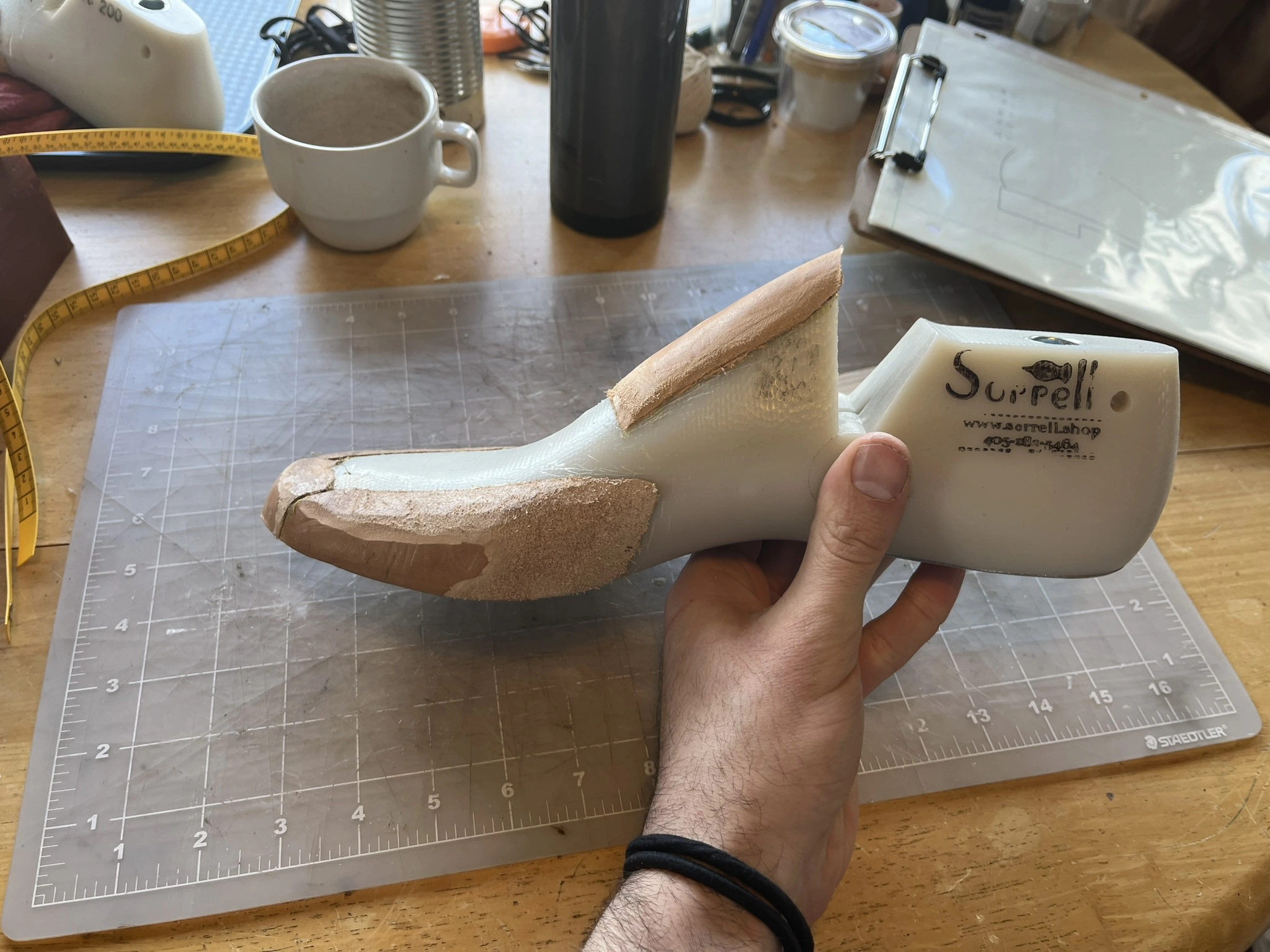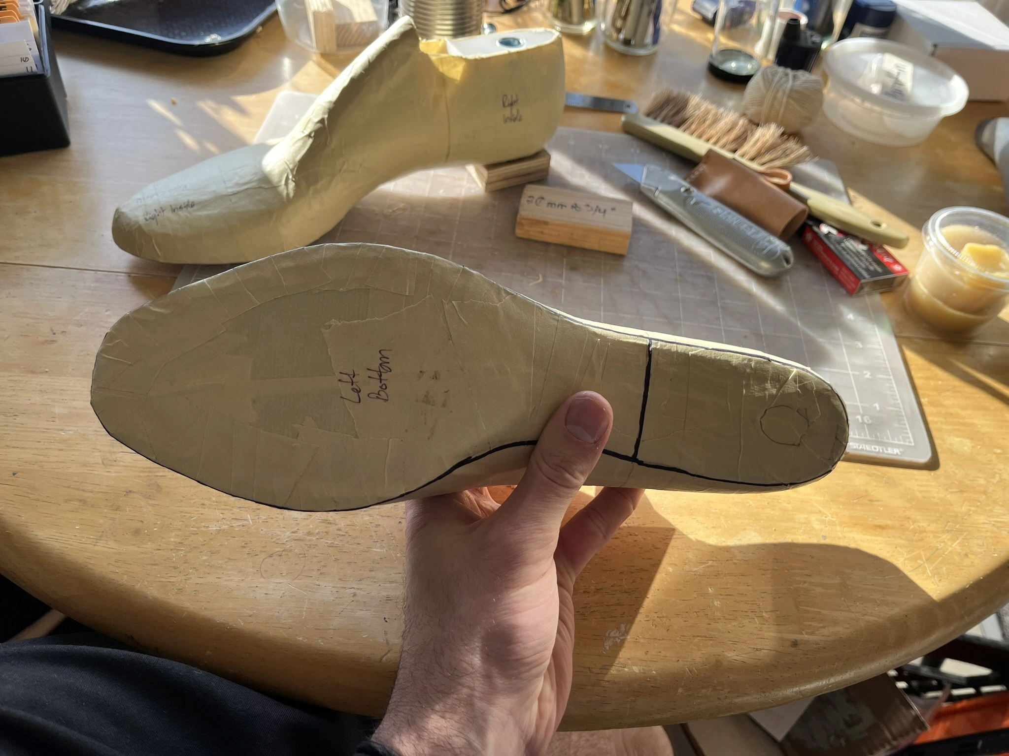 I was nervous about giving myself enough lasting allowance, and decided to make and last one whole upper before clicking the vamp and counter pieces for the second. This might have been a good idea, but I wasn’t as thorough enough taking notes about how I made the first upper to be sure I’d make all the same choices again on the second.