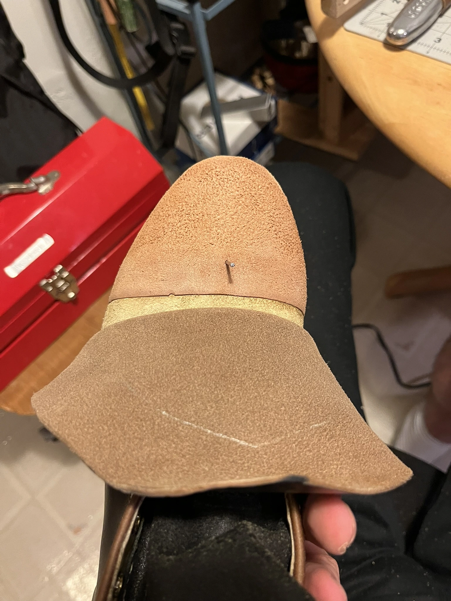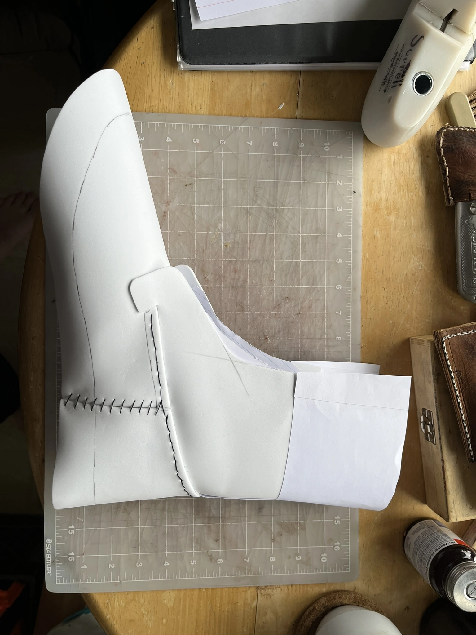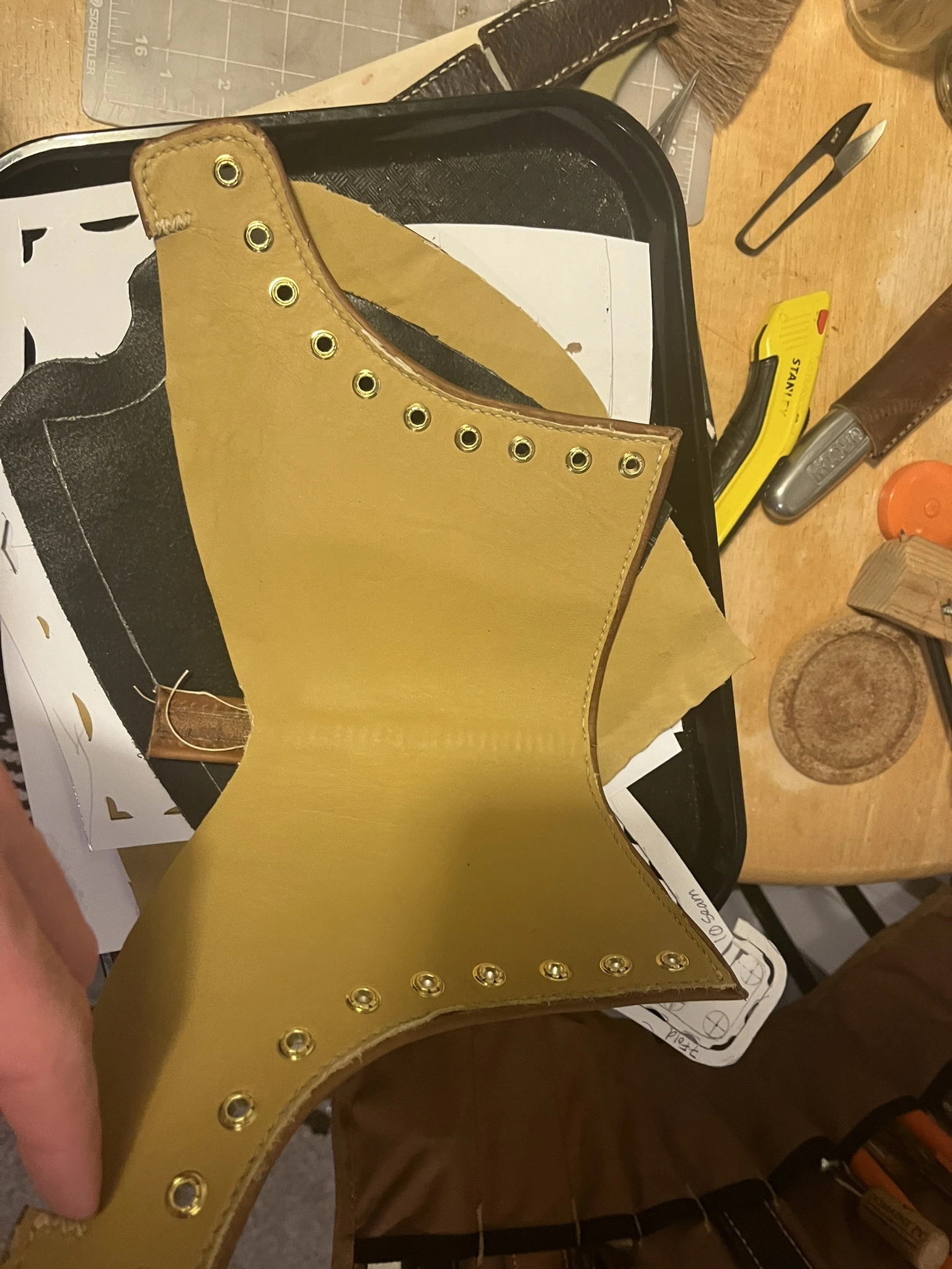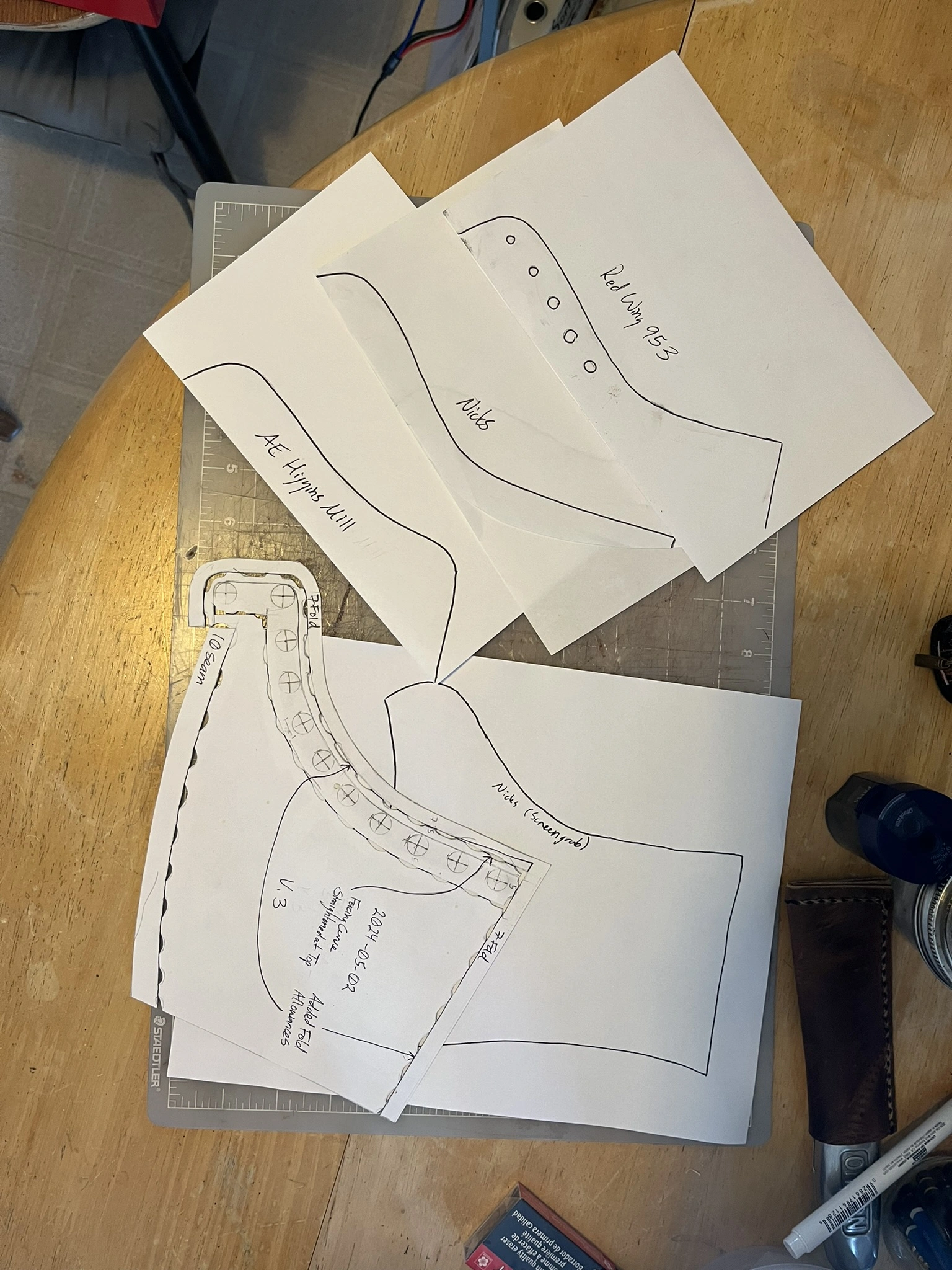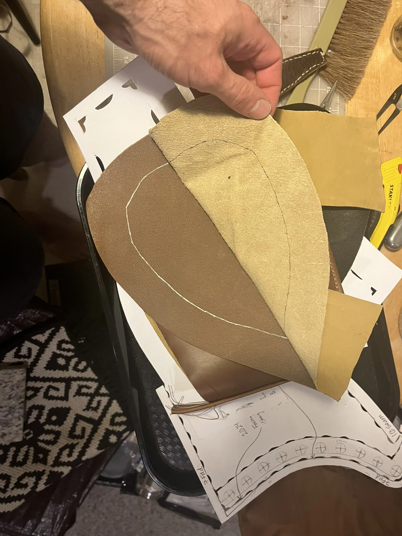 I got very, very close in the end. But I spent a lot of time retracing steps and measuring things on the shoe that got ahead. I also just plain skipped looking at my own notes on the thread I’d used on the quarters, mis-remembered, and had to pick and restitch to match.